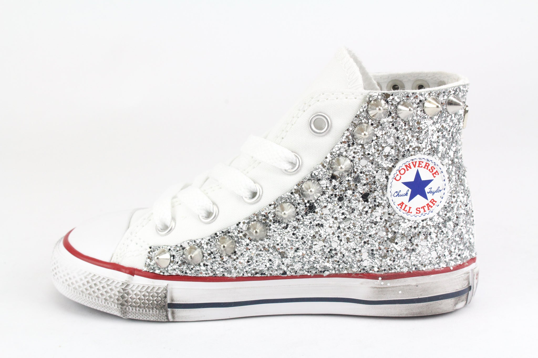 Converse All Star J Black Silver Glitter & Cuore Rosso