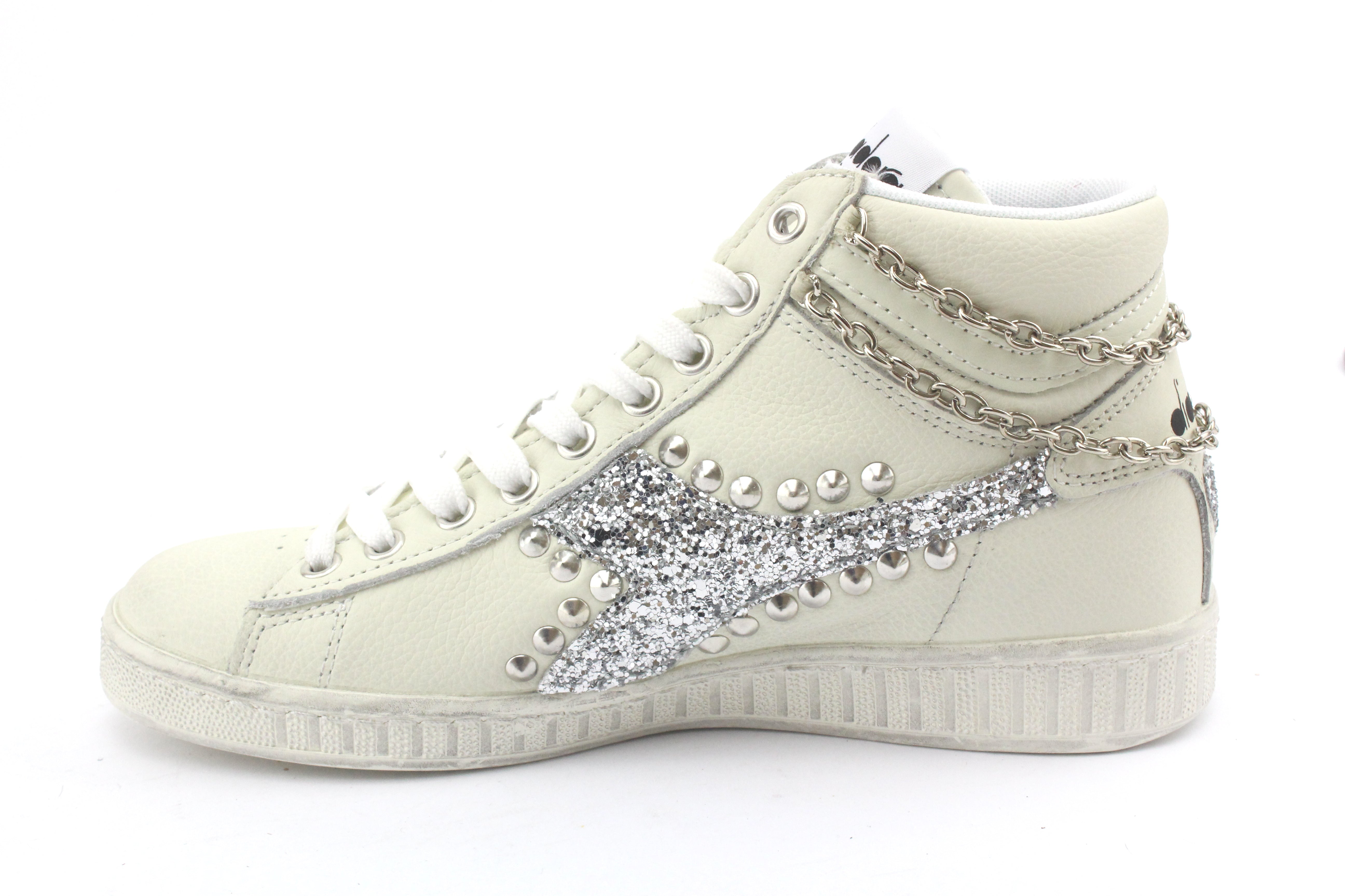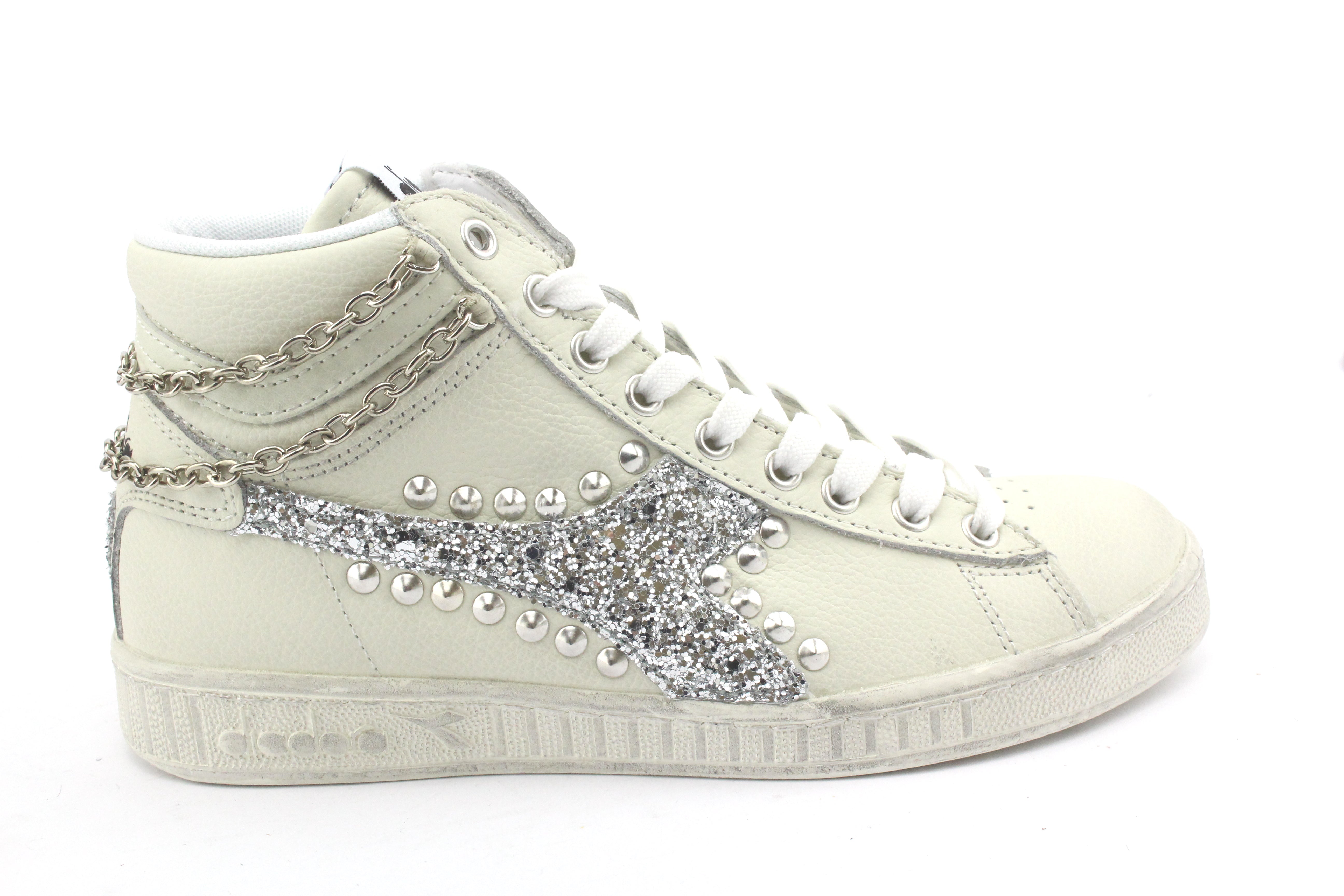 Diadora Game L High Waxed Glitter Argento Borchie & Catena